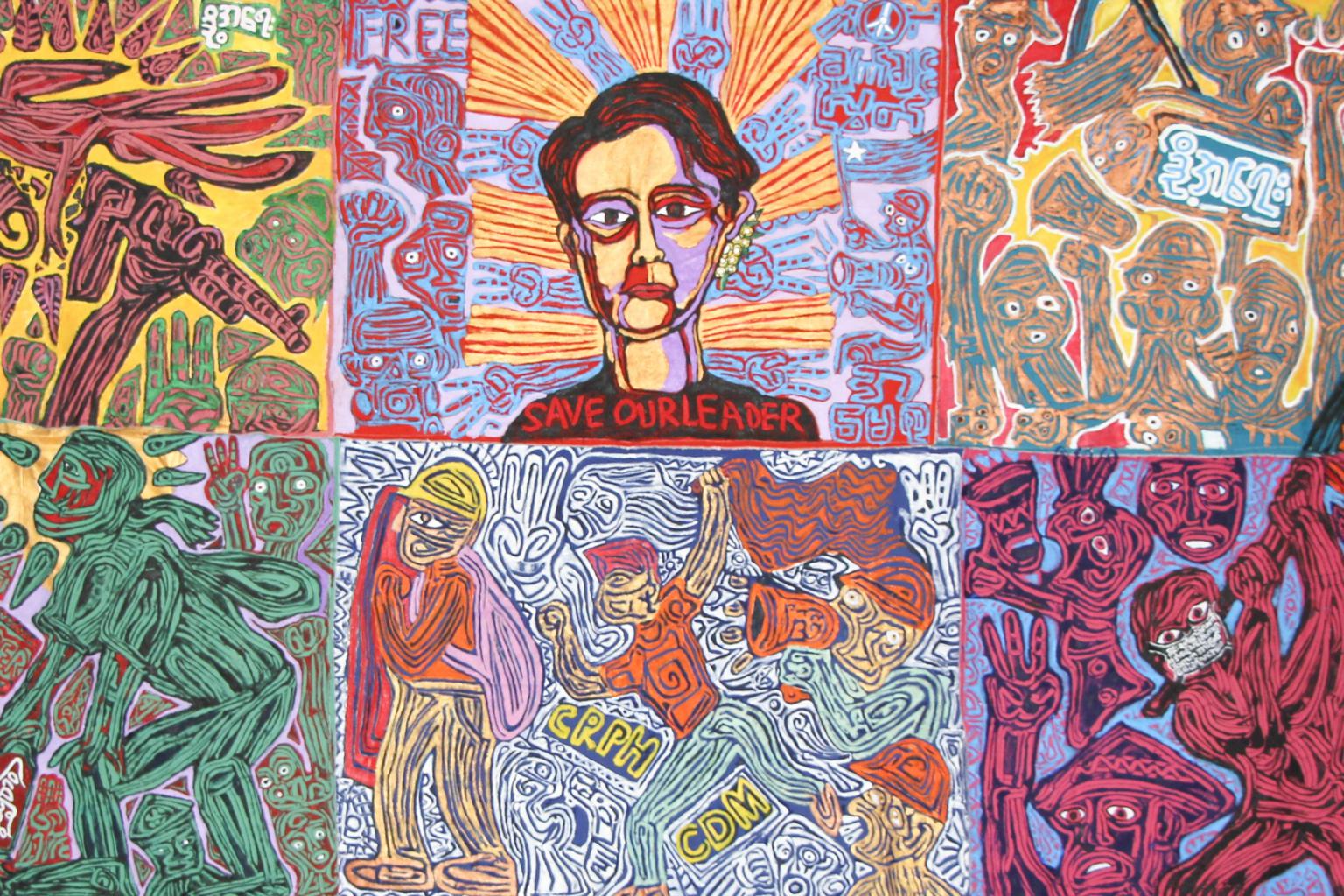 Artist Htein Lin from Myanmar has new work inspired by violent demonstrations there in 2021.