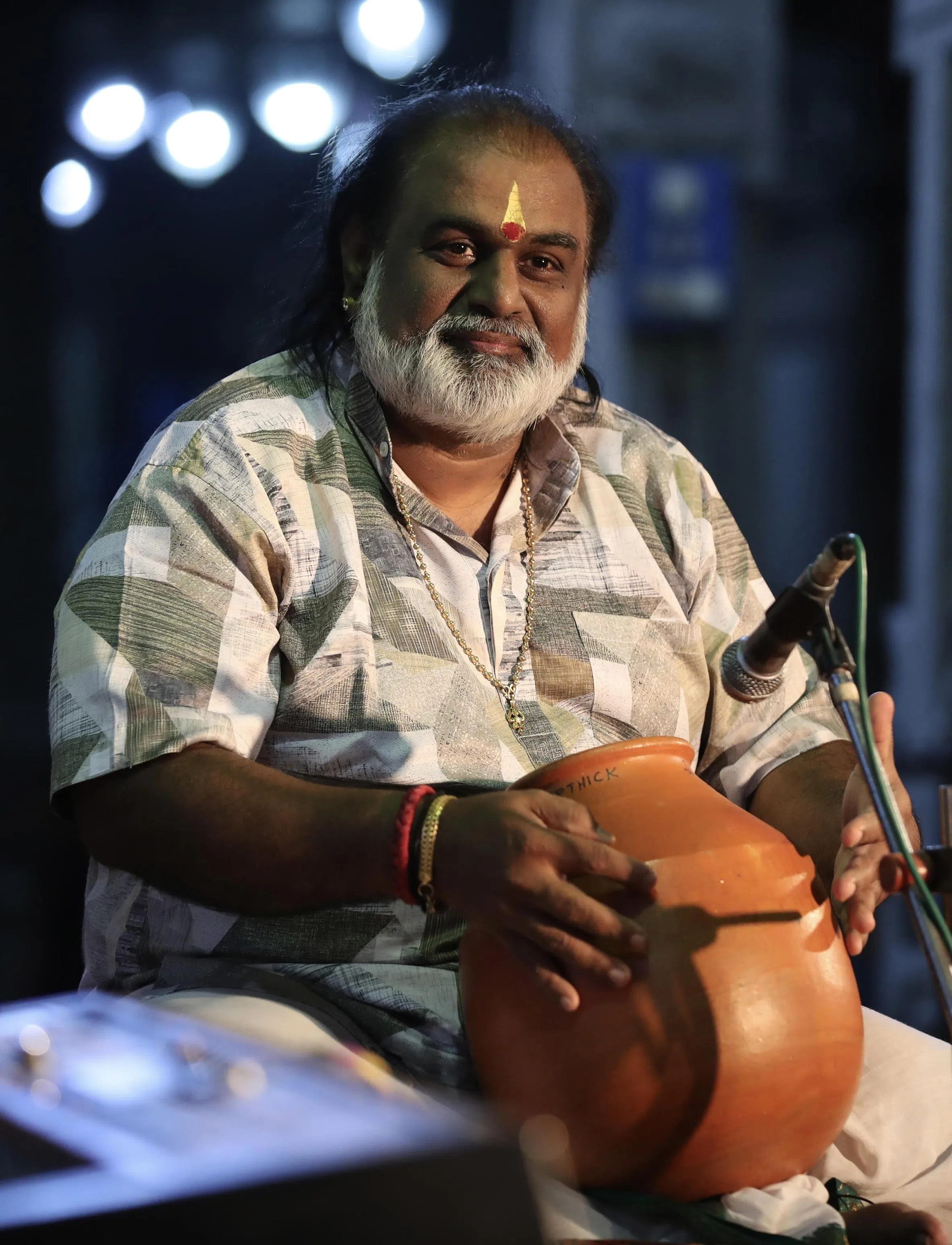 Maestro Karthick plays the Ghatam, a narrow-mouthed earthenware water pot used as a percussion instrument in India.