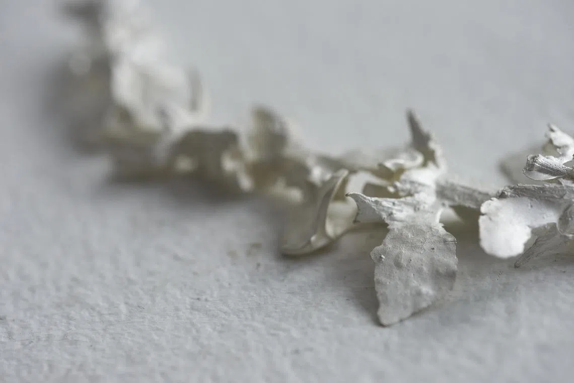 Silver pieces cast from a tomato calyx by jeweller Shing Lee.