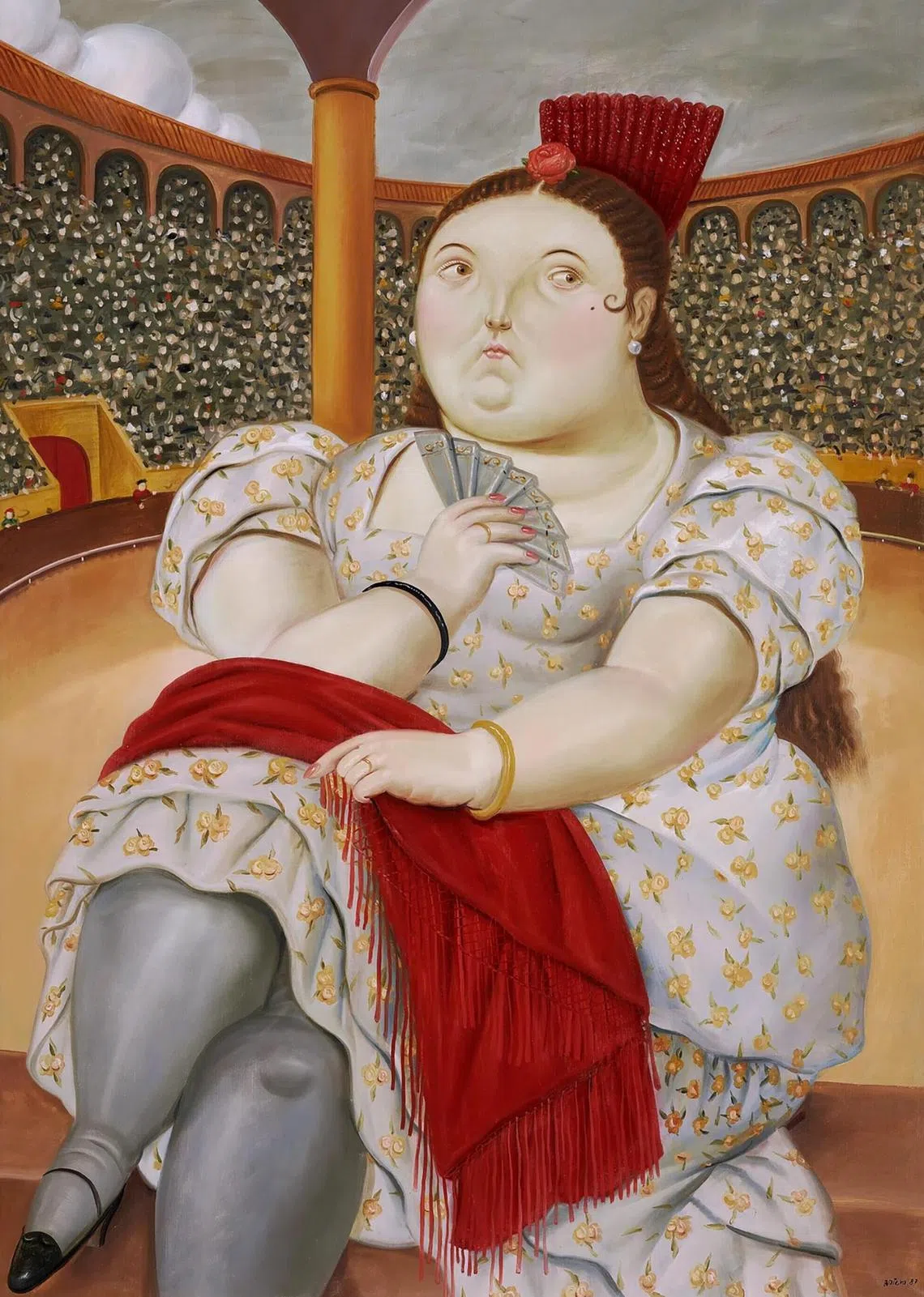 There are some smaller works on paper. Nonetheless, it is the large-scale paintings of curvaceous women and stout men, depicted most often in mundane everyday poses – a family on a picnic with their pet, two men playing instruments, a tango-ing couple – that most visitors will zoom in on.