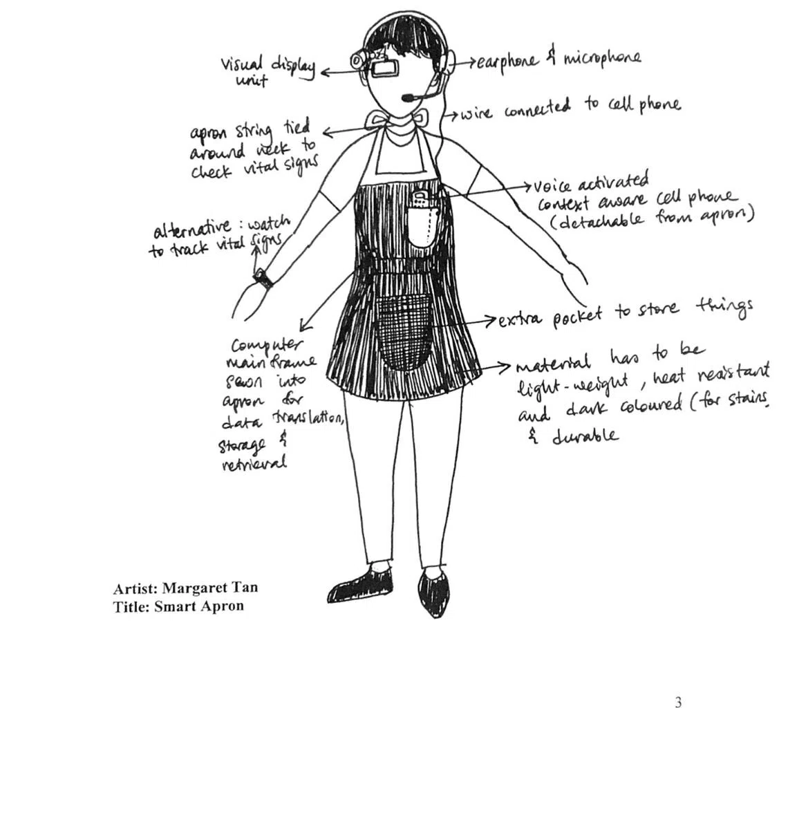 National University of Singapore senior lecturer Margaret Tan’s illustration of a “smart apron”, which she pitched in 2003 for a digital arts awards competition, is a curiosity.