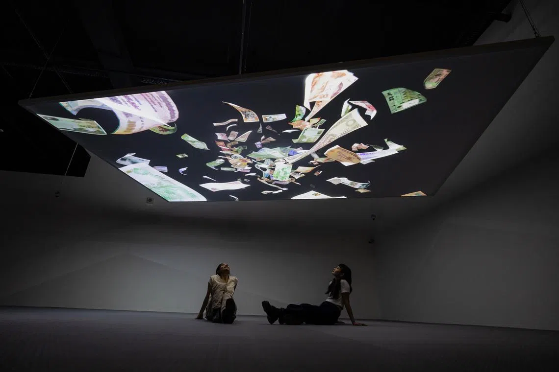 These hidden systems of power and wealth exchange are also referenced in a subsequent screensaver of falling banknotes that mimic Singapore’s meteorological patterns.