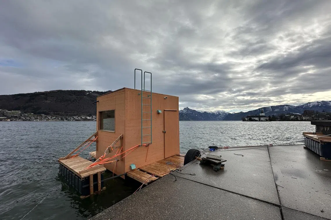 Plateau Blo, for example, comprises four floating structures on Lake Traunsee including a sauna where visitors can sign up for sessions.