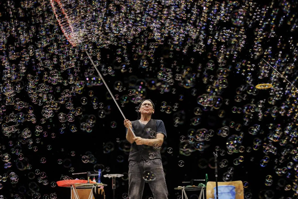 During the hour-long show, he juggled bubbles midair, tried to create “the biggest bubble ever” and performed his bubble-levitating trick.