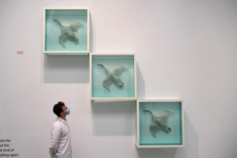 There are some well-known works, including those from the iconic series Natural History - animals preserved in formaldehyde and displayed in large tanks - alongside others that have never before been shown in public.