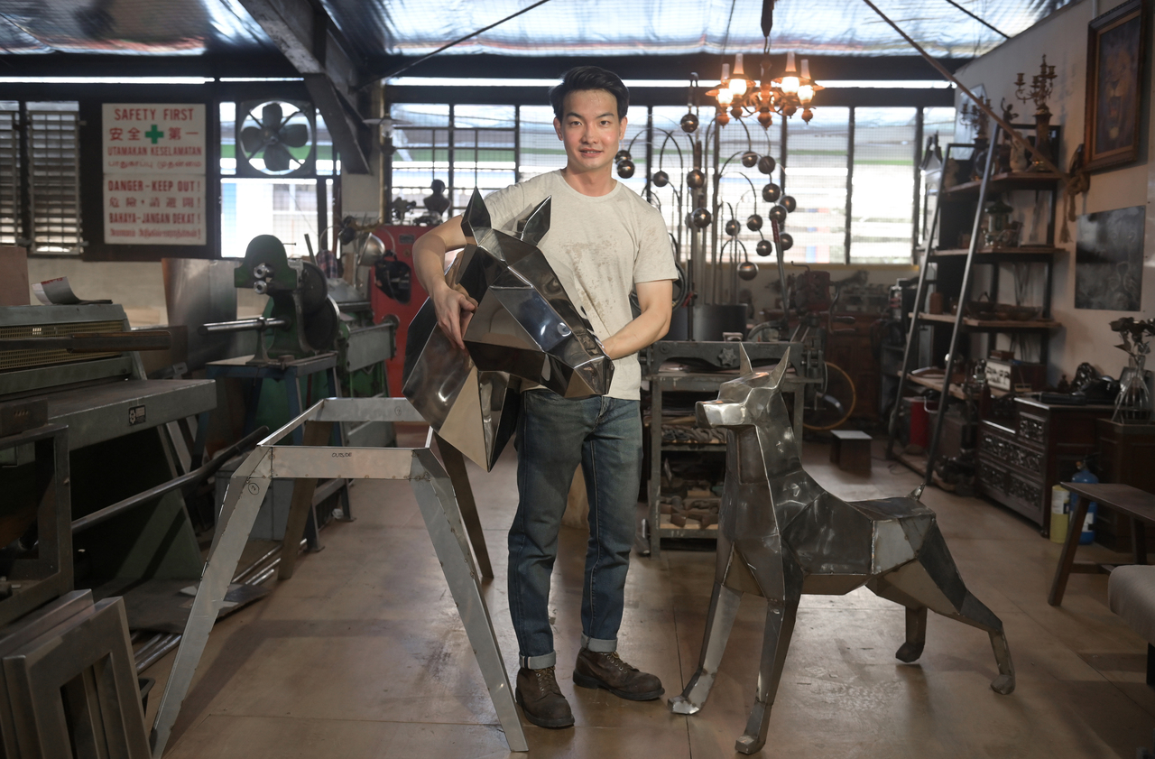 SINGAPORE - Metal craftsman Matthias Yong, 25, loves the feel of bare metal - particularly stainless steel - so much so that he named his workshop studio Baremetalco.