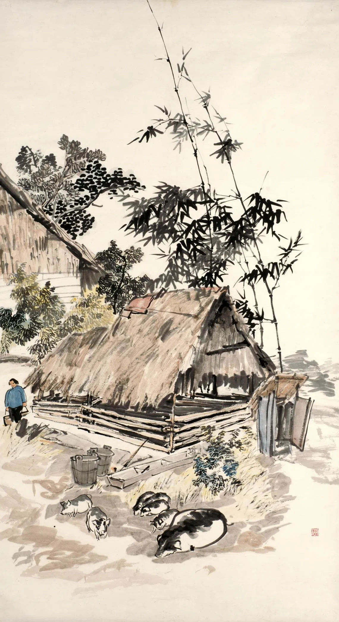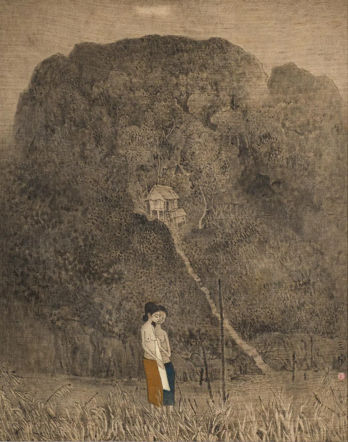 Chen Chong Swee’s Pig Farm (undated), for example, depicts a once-common Singapore sight in the Chinese ink style he is famed for. Cheong’s Landscape (1981) contains his signature lean elegant women, inspired by indigenous women of the region, while Liu’s Souri (1953) captures a classic Balinese scene in his distinctively bright colours.