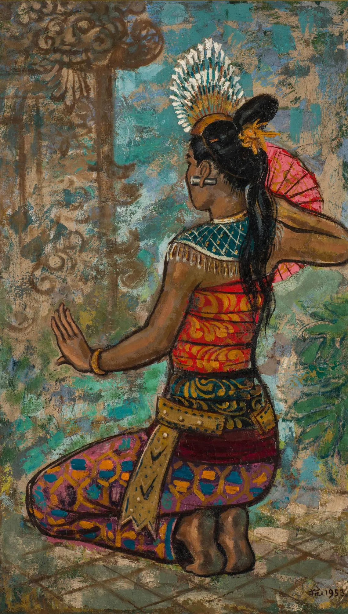 The male artists were part of a group that visited Bali in 1952 in search of artistic inspiration. That trip was a milestone in the development of what came to be known as the Nanyang style of painting, in which the styles of Chinese and Western art were combined to depict distinctly South-east Asian subjects.