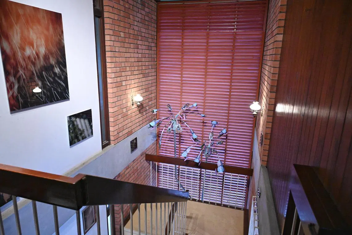 As one rises through the stairwell, the infill louvred windows, timbre-strip walls and mild-steel balustrades are some fine details that contribute to the symphony of textures. Artist Cynthia Delaney Suwito’s artificial plants in Belongings (2024), made from household objects, feels like a comment on the porous indoors and outdoors of the house, and photographer Khoo Guo Jie’s Portals (2023) offers abstract visions of living in this austere modernist residence.