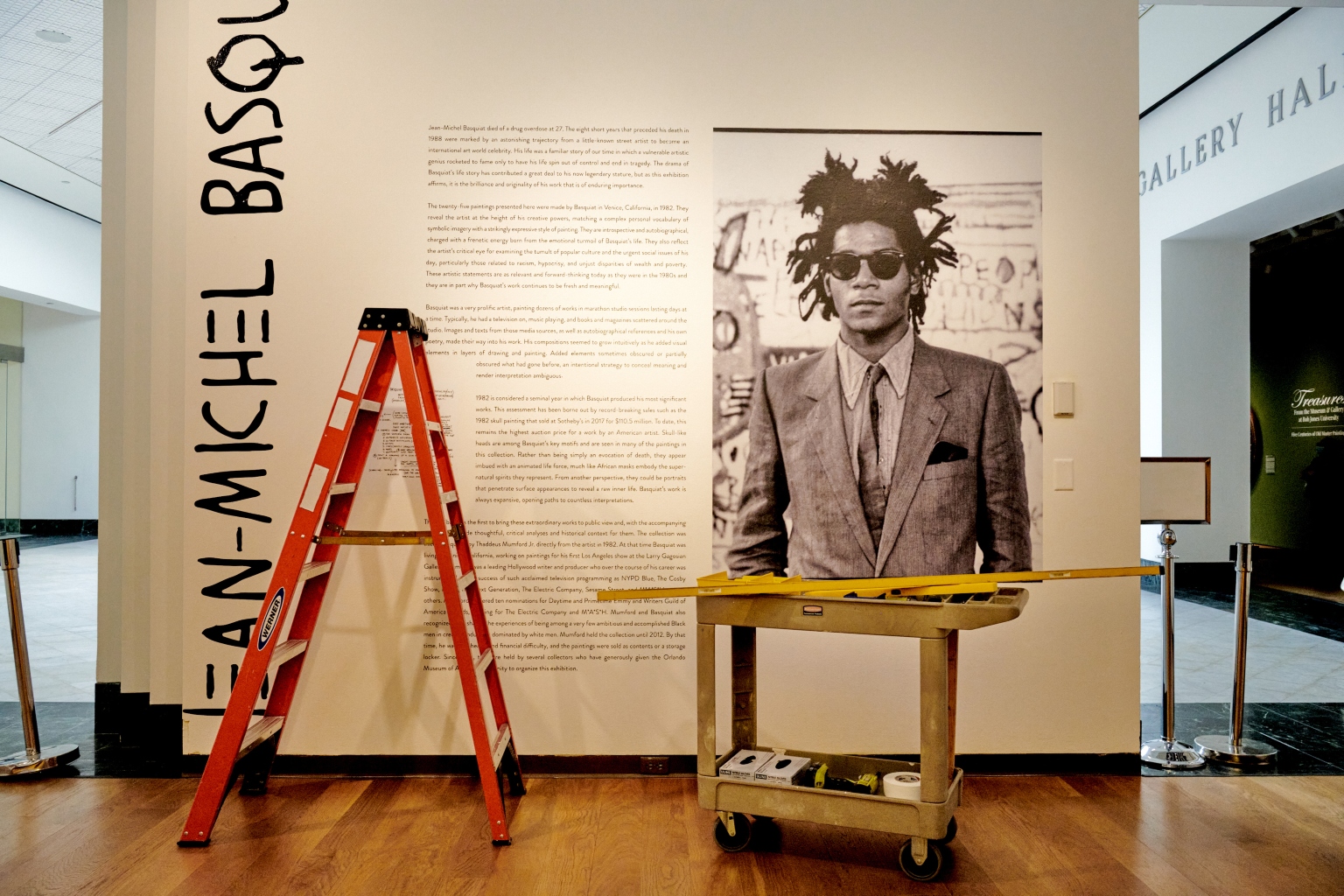 Set-up in progress for the exhibit Heroes & Monsters: Jean-Michel Basquiat at the Orlando Museum of Art, on Feb 2, 2022.