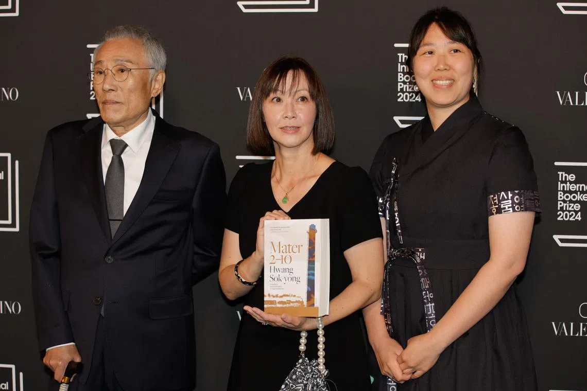 (From left) Mater 2-10 author Hwang Sok-yong, and translators Sora Kim-Russell and Youngjae Josephine Bae. The book was a finalist at the 2024 International Booker Prize.