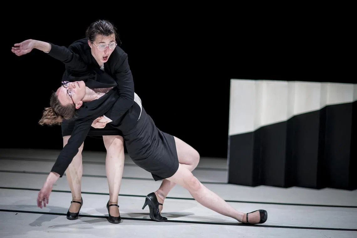 Performing the intense but comedic routine are Czech dancer Tereza Ondrova and theatre director Petra Tejnorova.