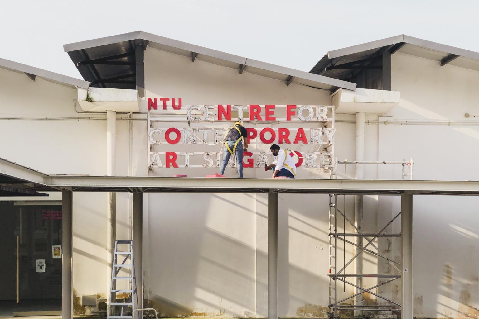 NTU Centre for Contemporary Art Singapore’s sign on Block 43 being taken down.