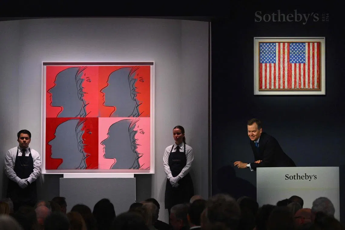 Flags, by the 93-year-old Johns, sold for US$41 million, while Securing The Last Letter (Boss), by painter and photographer Ed Ruscha, sold for US$39.4 million.