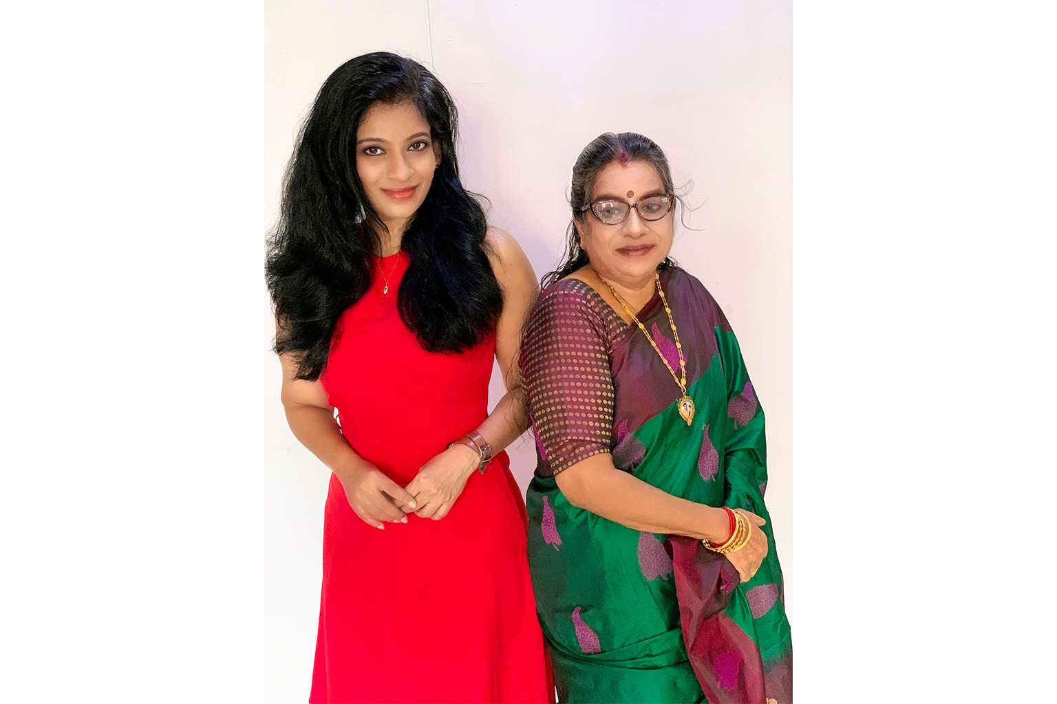 Author Kamaladevi Aravindan with her daughter and translator Anitha Devi Pillai.