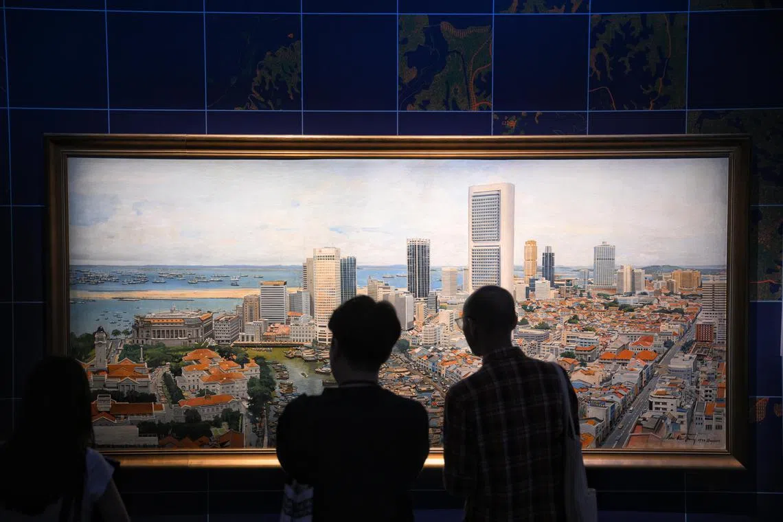 Lai Kui Fang’s painting of Singapore’s skyline from the 1970s at Once Upon A Tide.
