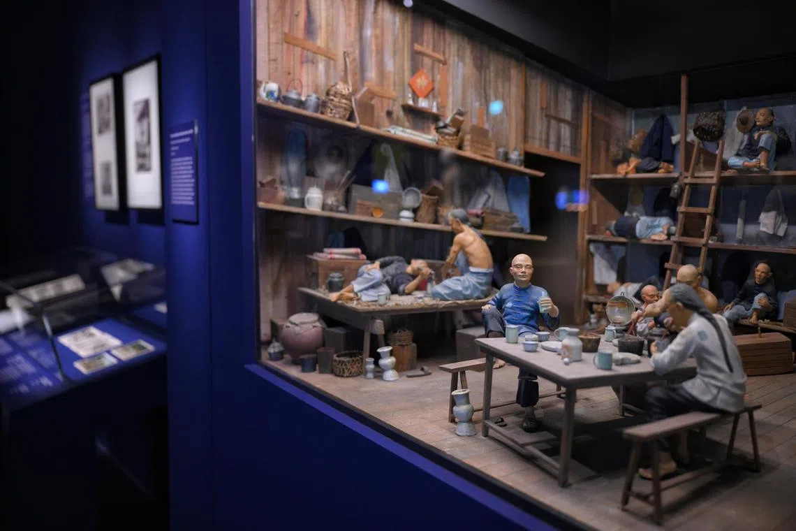Visitors of a certain age will recognise this diorama, a traditional style of museum display in the 1980s and 1990s. It is one of several dioramas the museum has saved from its old displays and captures in lifelike detail the quarters of coolie labourers. Check out the narrow three-tiered bunks, which crammed people in cheek by jowl. In real life, each bunk bed might even have been shared by two men sleeping in shifts, depending on their work schedules.