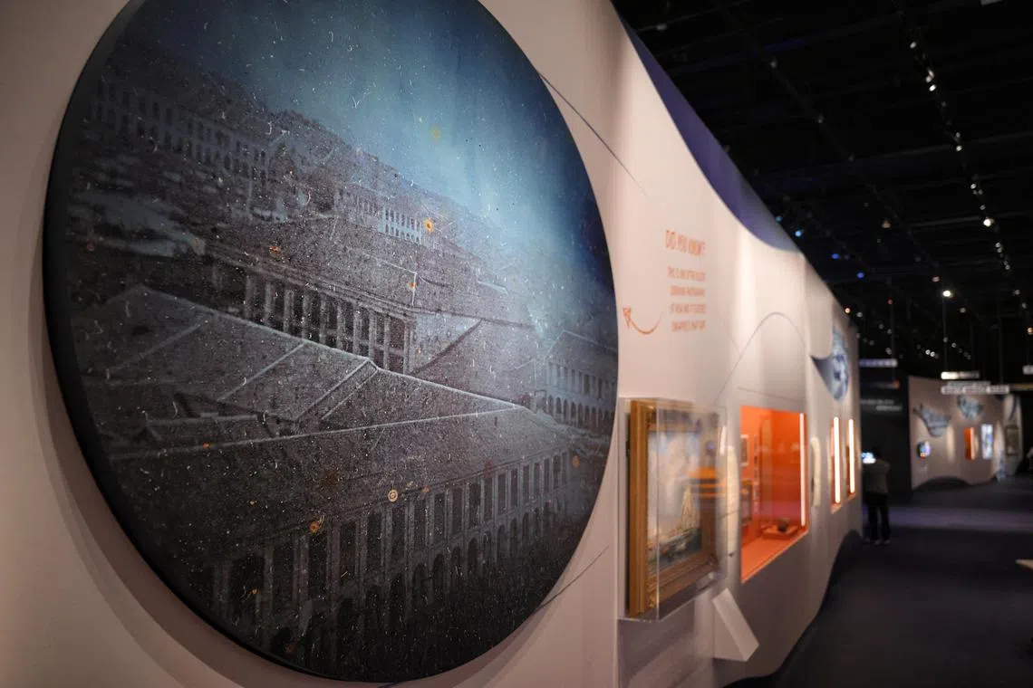 An enlarged version of a 1844 daguerreotype of Singapore showing a view of Boat Quay at Once Upon A Tide.
