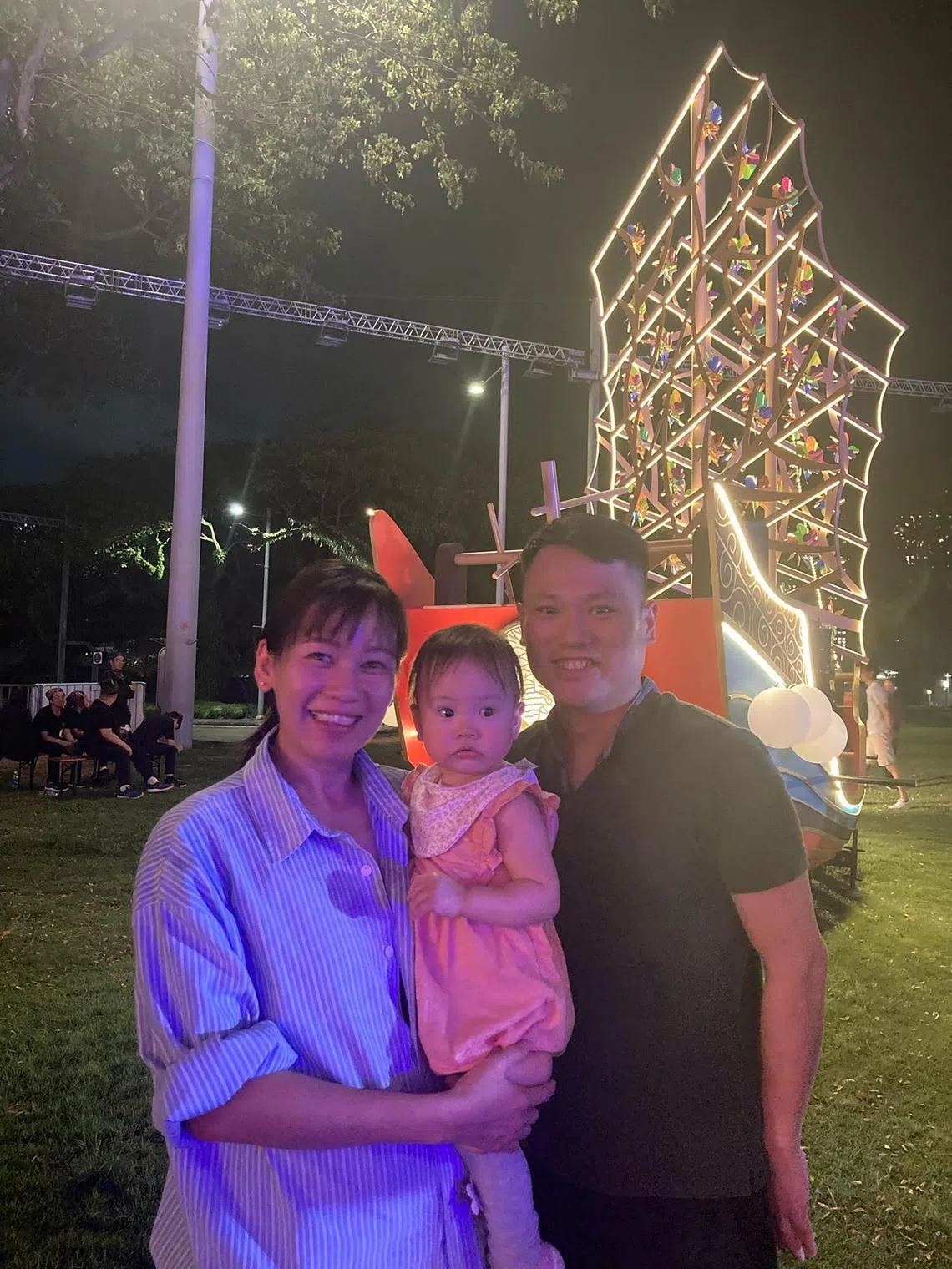 Lau Su Anne with her husband and 15-month-old daughter during Little Sifa at Empress Lawn.
