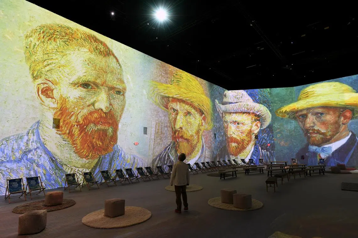 The 360-degree digital projection showing self portraits of Vincent van Gogh at Van Gogh: The Immersive Experience.