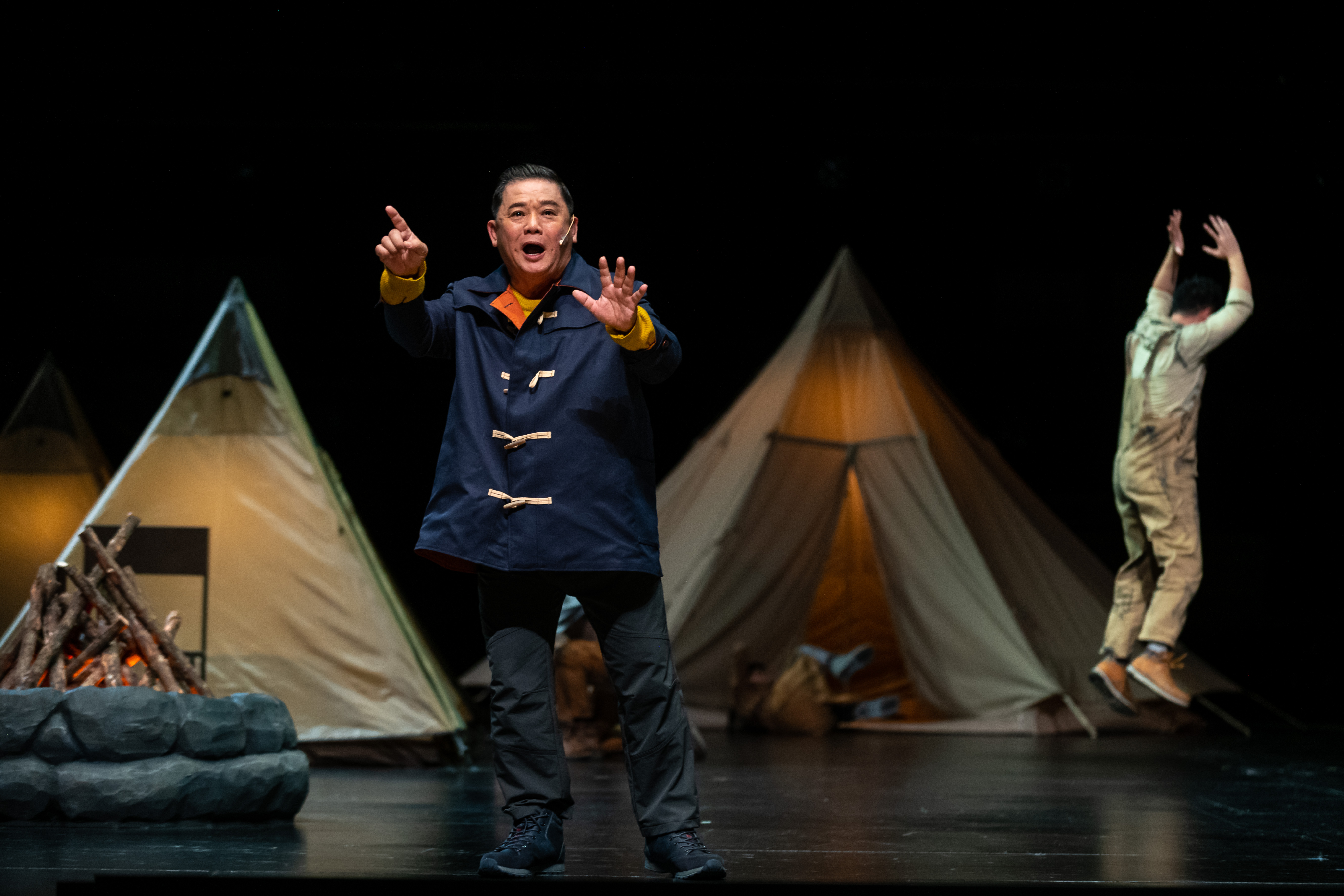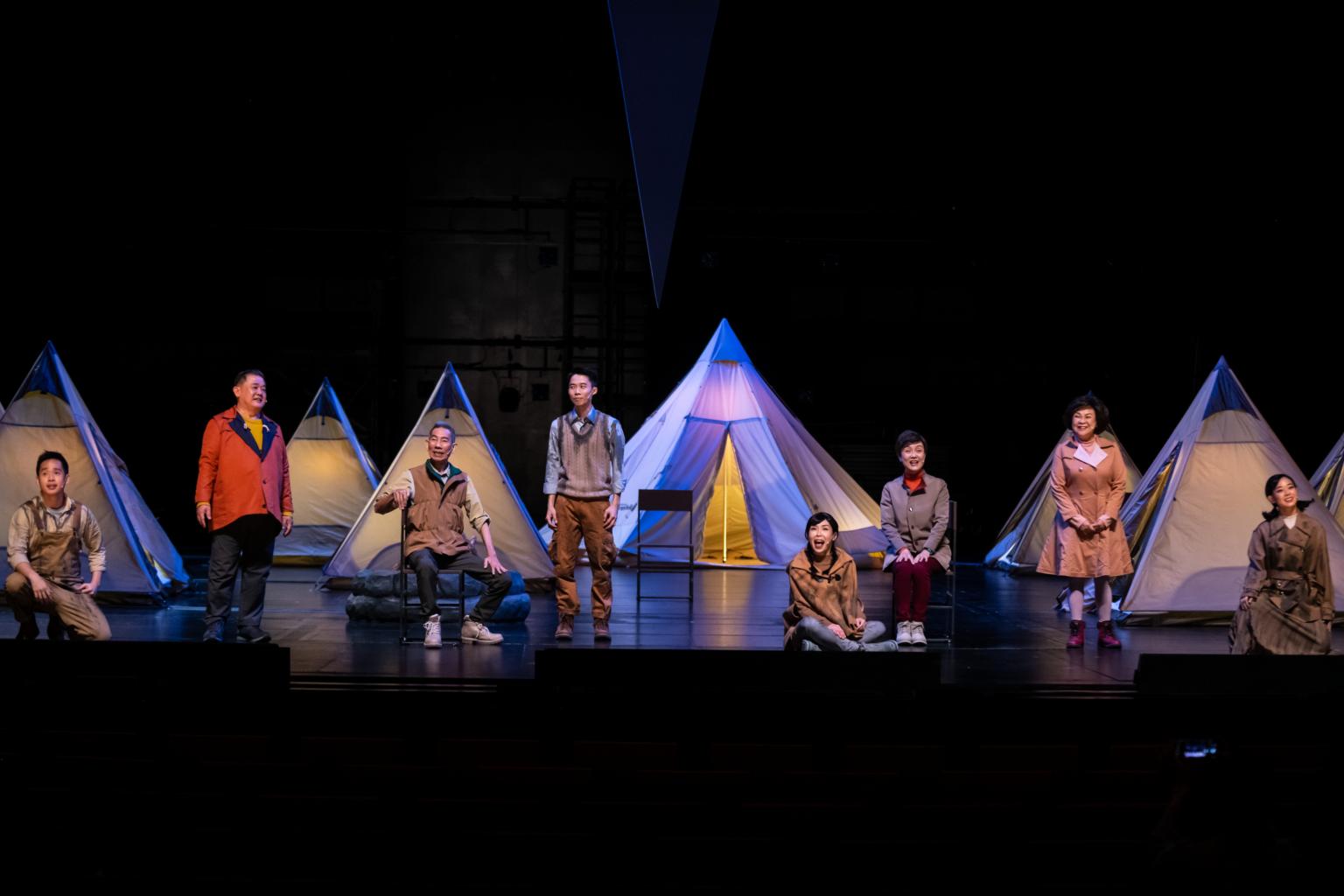 On a stage, eight tents sit around a smoking campfire. It is time to tell a story.