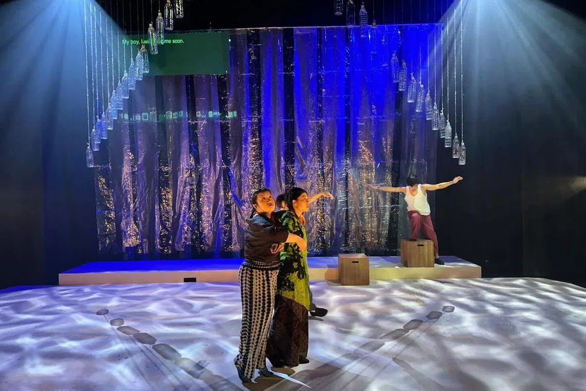 Lighting designer Alberta Wileo, who won Best Lighting at The Straits Times Life Theatre Awards 2023, conjures a palette of sensations from beach to sunlight to storm that draws oohs and aahs from the primary-school audience.
