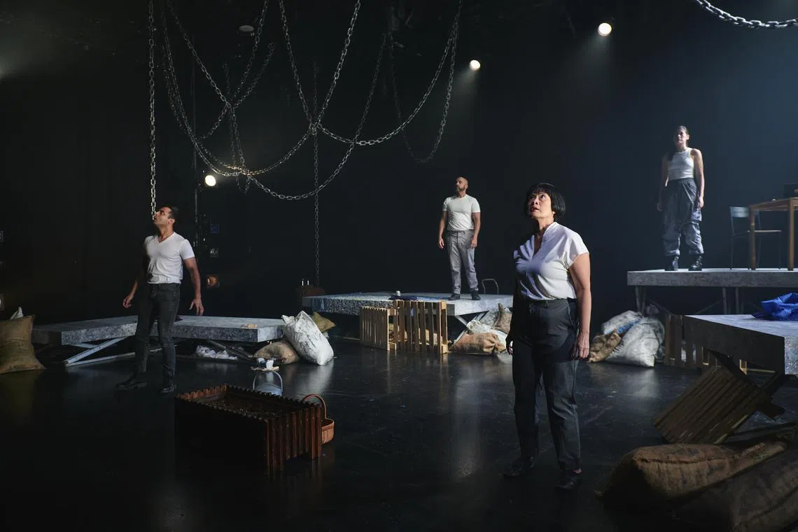 (From left) Shrey Bhargava, Pavan J. Singh, Karen Tan and Arielle Jasmine Van Zuijlen play 43 characters in playwright Joel Tan’s No Particular Order.