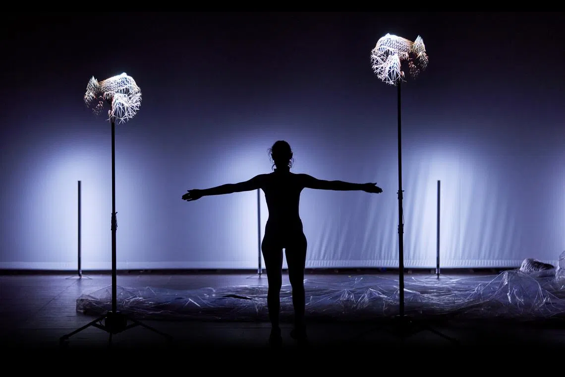 A performer in white lycra – the castaway (Carlota Grau Bages) – performs an aerobics warm-up routine, for example. This culminates in a dance-off with three neon-dressed strangers looking like they have just leapt out of spin class. All this takes place within an inflatable rice grain-shaped balloon.