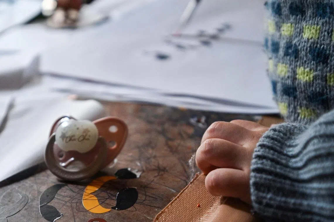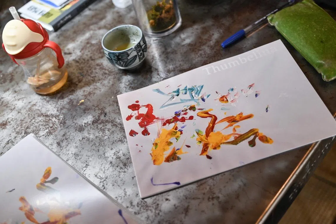 Colourful smudges adorn tatami mats and tables at the 21-month-old’s suburban home, where her mother patiently helps twist open paint tubes and squeeze them onto paper.