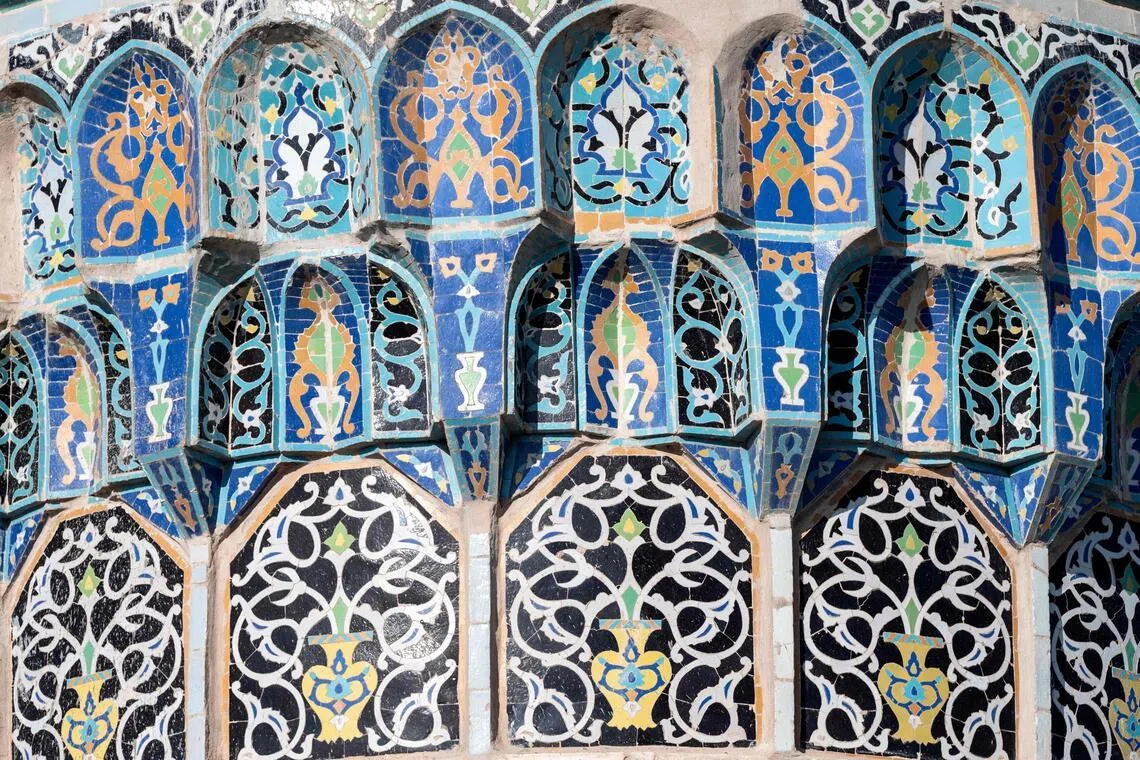 At Herat’s central mosque, which is covered in blue ceramic tiles, there are delicate floral and geometric motifs created by Behzad.