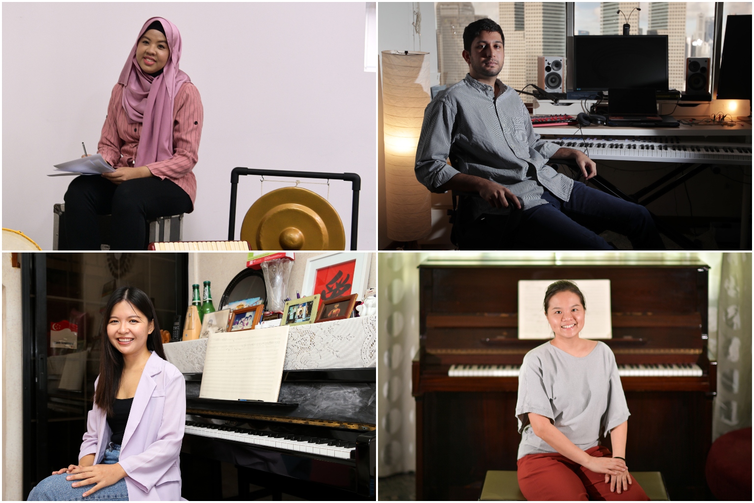 Young composers (clockwise from top left) Syafiqah ‘Adha Sallehin, Avik Chari, Chua Jon Lin and Tan Yuting.