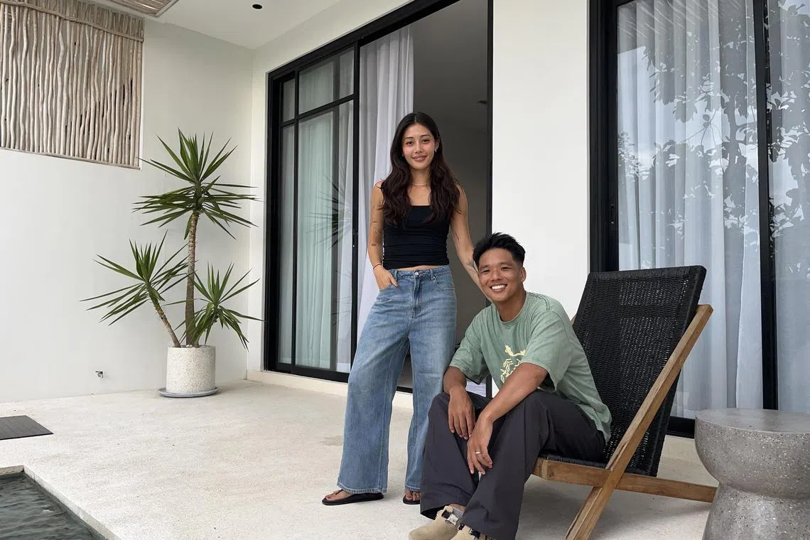 Signing a one-year lease for a one-bedroom villa, the couple, who both work in social media, jet between Singapore and Indonesia every month or so to visit family and sort out job commitments.