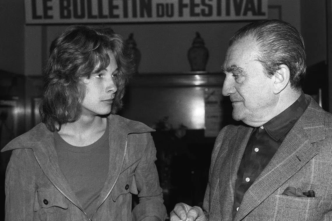 Italian director Luchino Visconti (R) chats with young Swedish actor Bjorn Andresen, May 24, 1971 in Cannes, during the international film Festival.