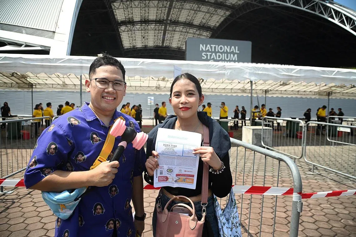 At the front of the line were dating couple, Ms Dewi Mayaningtyas and Mr Cenmidtal Cuaca Mulyanto from Indonesia. The 36-year-old employees of a crypto-exchange firm specially flew to Singapore to catch Blackpink live for the first time. They had failed to secure tickets to the Jakarta gig on March 11. Mr Cenmidtal has supported Blackpink since 2016 and said that queueing in the scorching weather was worthwhile.