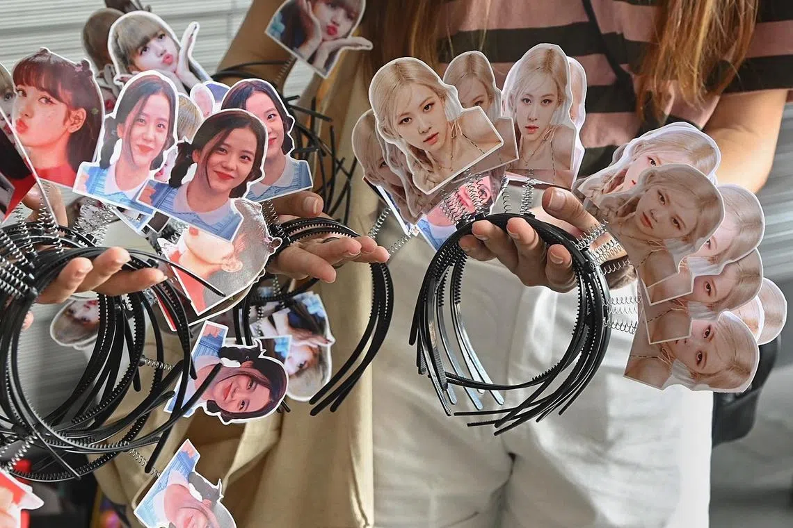 Blackpink merchandise being sold outside the Stadium MRT station on Saturday.