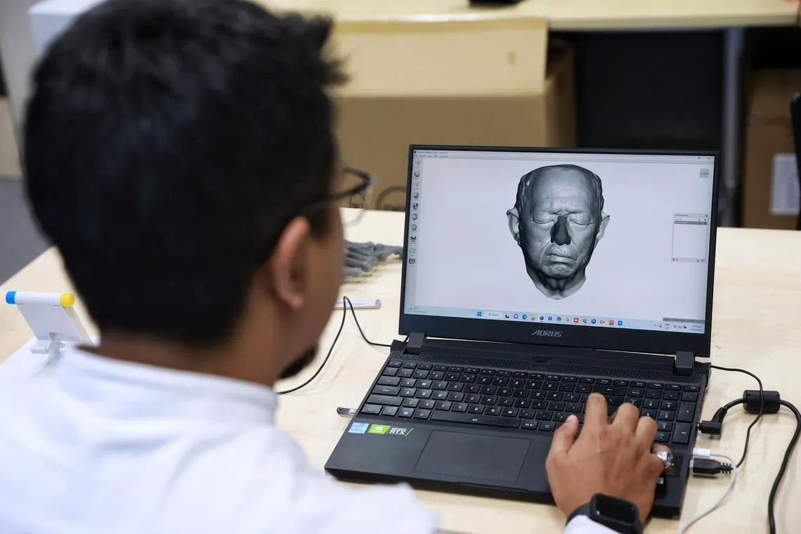 Printing engineer Nasrul Hadi Said from 3D printing company Medairum displays a 3D model of Mr Lian’s face.