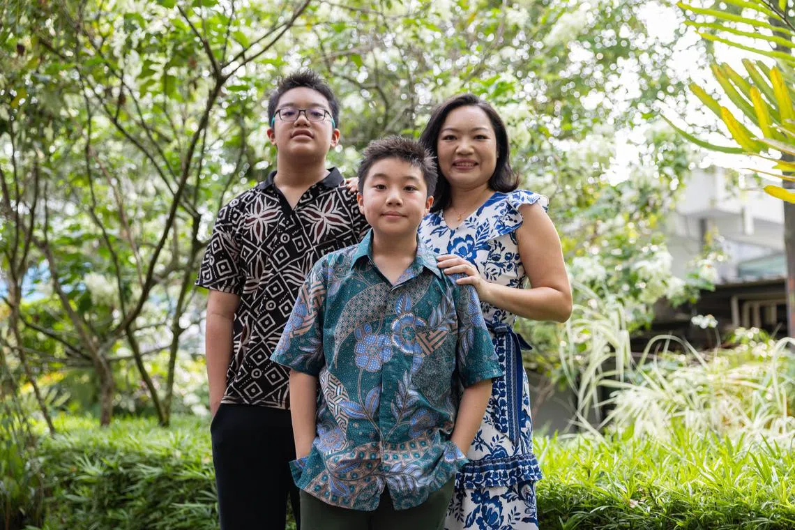 Ms Julia Chan with her sons, Jedi Chen (left), who has autism, and Javian Chen, who shows signs of attention deficit hyperactivity disorder.