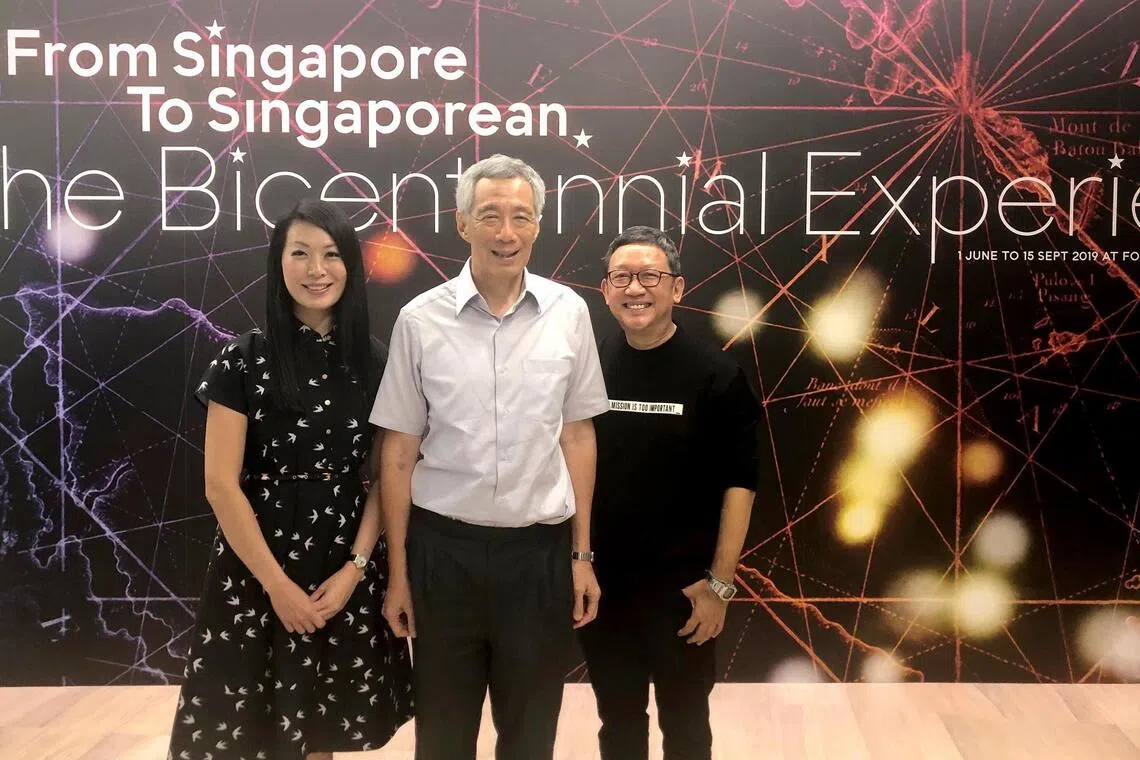 Beatrice Chia-Richmond (left) and Michael Chiang with Senior Minister Lee Hsien Loong (centre) at The Bicentennial Experience.