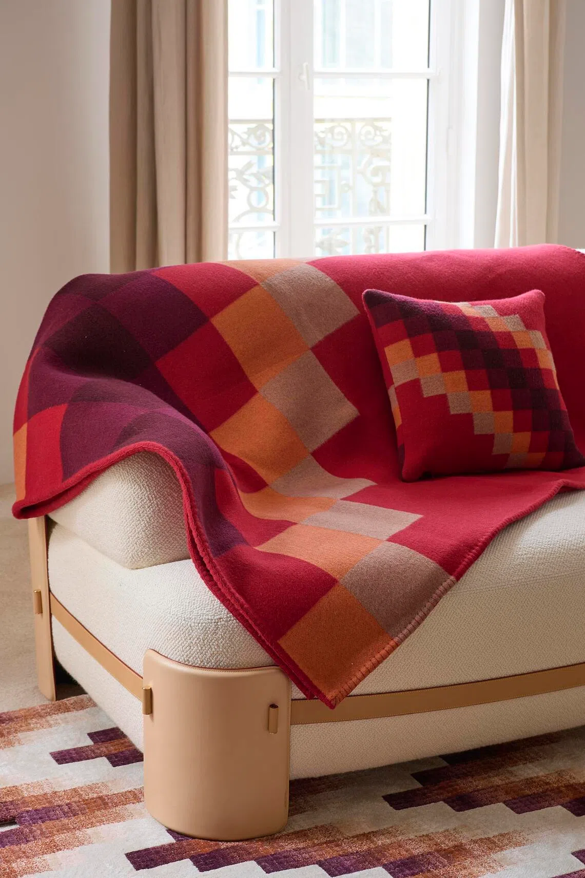 The Sunset collection of wool and cashmere throws and cushions features Louis Vuitton’s graphic signature in a palette that echoes the colours of an Argentinian dusk.