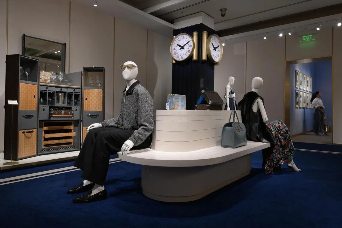 A train platform setting at Savoir Rever. On display are the Malle Vin and style ensembles designed by LV Men’s creative director Pharrell Williams and LV Women’s creative director Nicolas Ghesquiere.