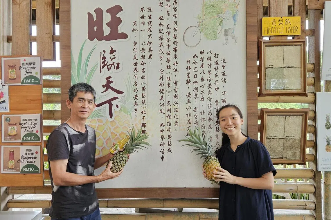 Nictar Pineapple Farm founder Haleem Lim and marketing director Eng Sze Kee develop guided tours and pineapple products to supplement the income of the farm.