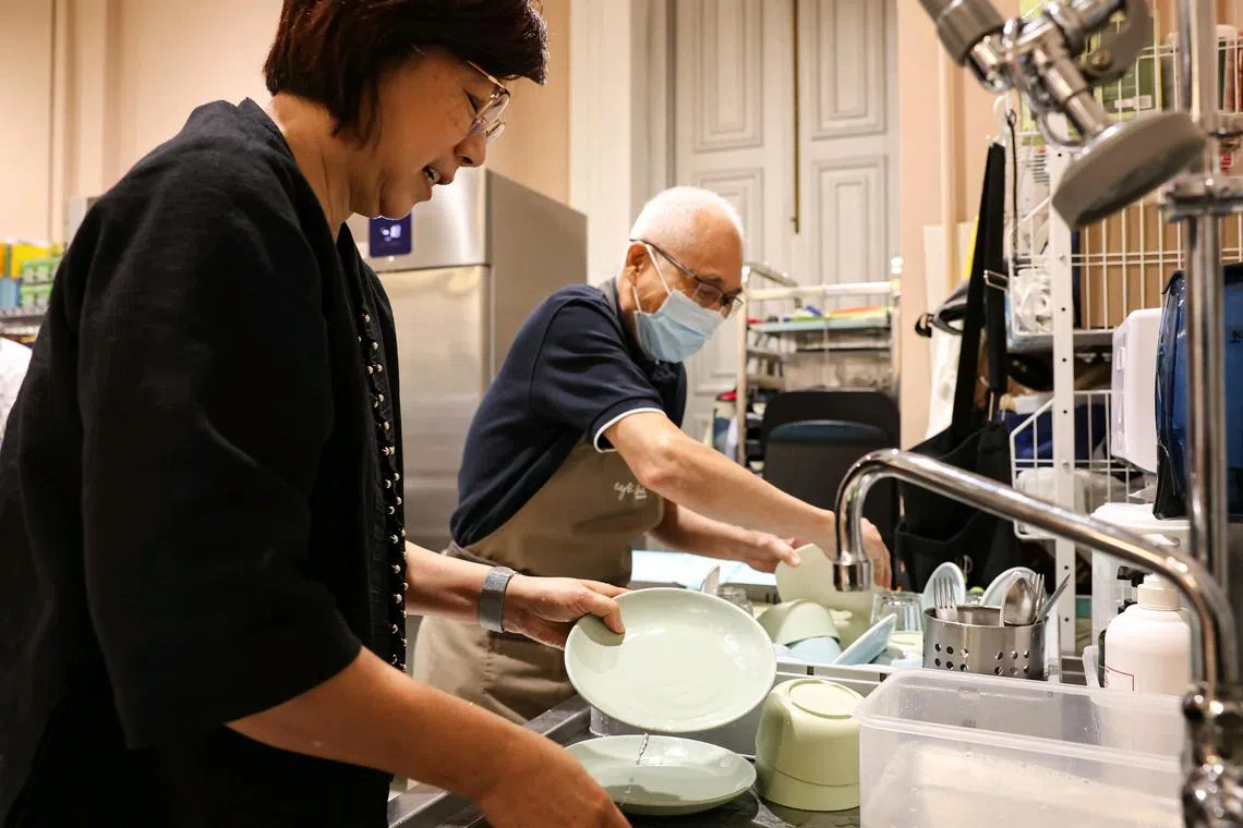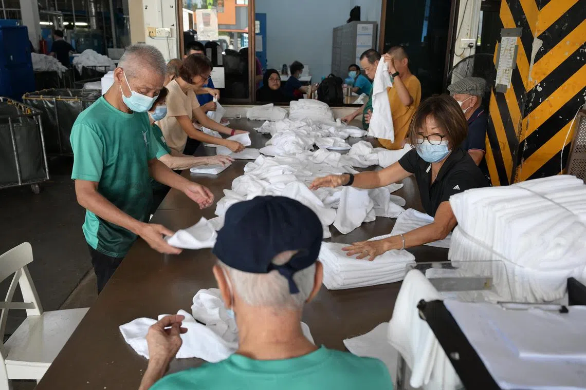 Correction note: An earlier version of this story said that residents with mild cognitive impairment assist in feeding others who are less mobile. This is incorrect as only care staff can feed residents. A caption also incorrectly stated the number of times a week that Mr Michael Tan works at Orchid Laundry.