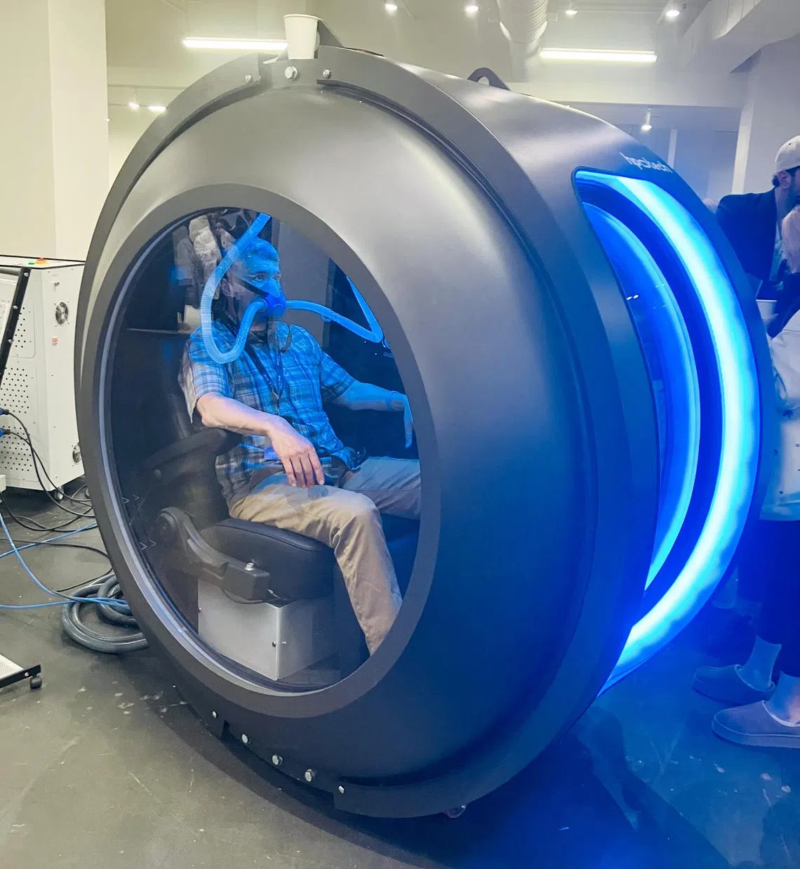 A hyperbaric oxygen chamber is among the anti-ageing technologies and therapies on display at the Don’t Die Summit in Los Angeles.
