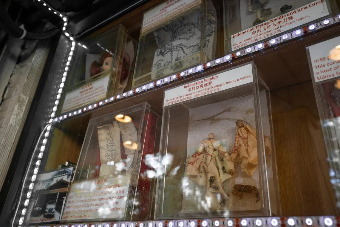 A stop on the tour is the “Ghostbuster shop” at Katong Shopping Centre, which features a display of “cursed artefacts” and videos of paranormal adventures.
