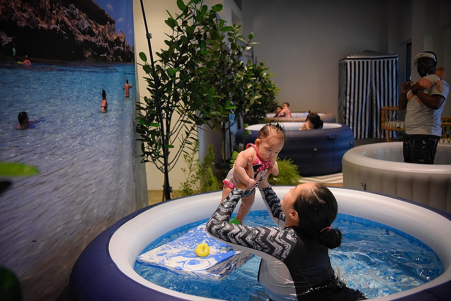 Happy Fish Swim School held live-stream sessions on Facebook to teach parents how to guide their toddlers to do swimming movements in a small bathtub at home.