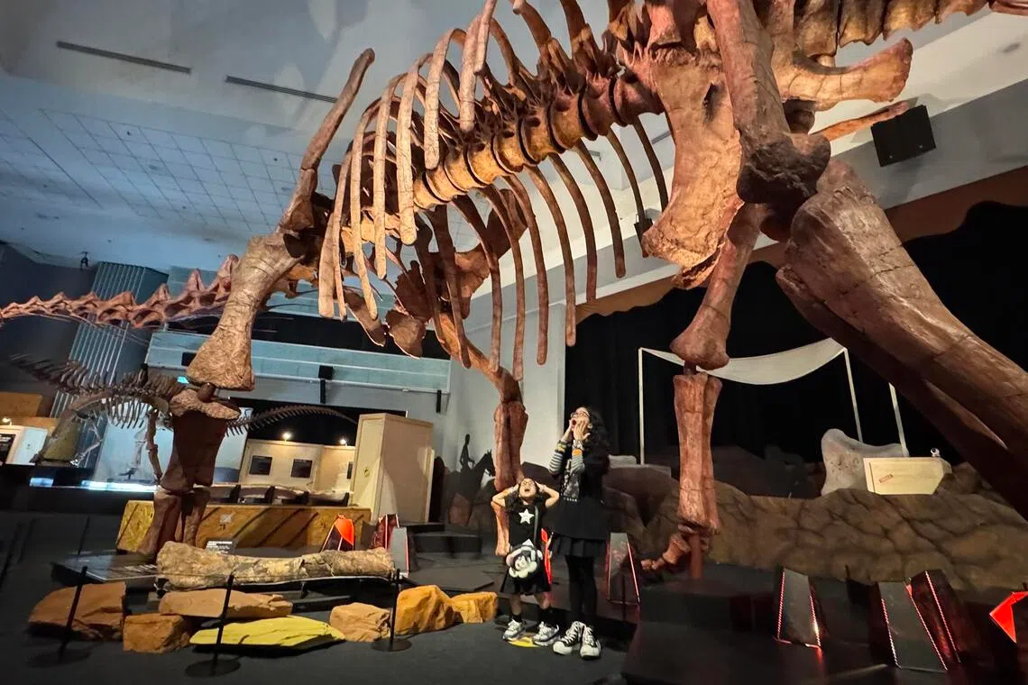 The largest one is an impressive 40m full-scale replica of the largest known dinosaur Patagotitan mayorum, a creature that walked South America around 100 million years ago. There is also Scotty, the largest Tyrannosaurus rex ever found.