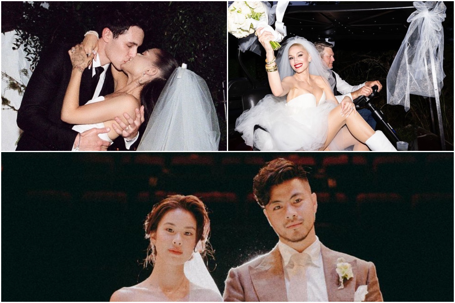 (Clockwise from top left) Celebrities Ariana Grande & Dalton Gomez, Gwen Stefani & Blake Shelton, Benjamin Kheng & Naomi Yeo, tied the knot during the Covid-19 pandemic.