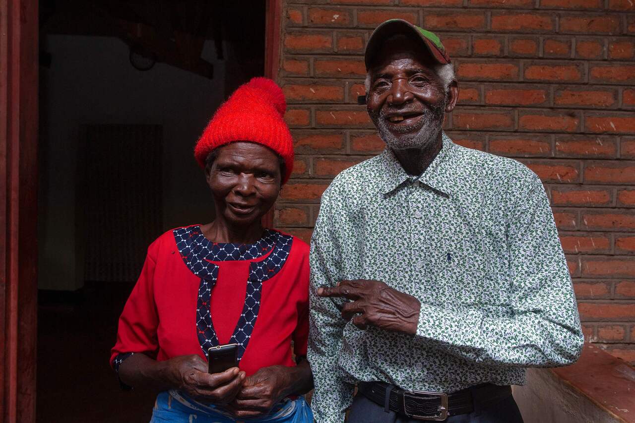 <p>Malawian musician Giddes Chalamanda (R), 92, poses with his wife Margalita Alfred (L), 71, at their home in the Madzuwa Village near Chiradzulu, southern Malawi, on January 13, 2022. - At 92, Giddes Chalamanda has no idea what TikTok is. He doesn't even own a smartphone.