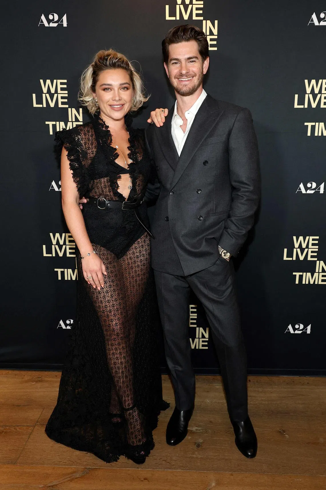 Florence Pugh and Andrew Garfield at the New York screening of We Live In Time at Crosby Street Hotel on Sept 9.