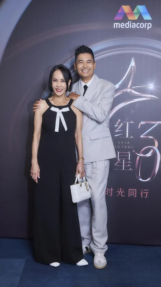Chow Yun Fat and his wife Jasmine Tan at Star Awards 2025.